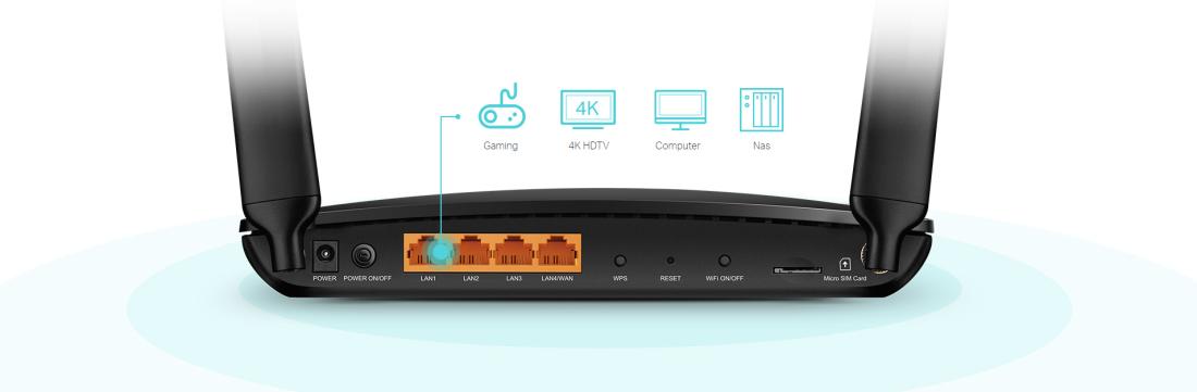 Modem LTE WiFi - beltéri használatra, vezetékes (hálózathoz), 1 nano sim kártya slot, WiFi 5, szabványok 802.11a/b/g/n/ac, (2.4 GHz 300 Mb/s + 5 GHz 867 Mb/s ), 3 LAN port 1 Gbit sebességgel, 1 WAN/LAN port 1 Gbit sebességgel, WEP 128bit, WPA, WPA2, WPA-PSK és WPA2-PSK titkosítás, funkciók router, MU-MIMO, Wi-Fi Mesh, IPv6 Ready, szülői felügyelet, OneMesh kompatibilitás, hozzáférés a felhőn keresztül és mobilalkalmazás vezérlése, szolgáltatás minősége QoS (Quality of Service), max. 2 SSID, levehető antenna, ethernetkábel és adapter a csomagban
