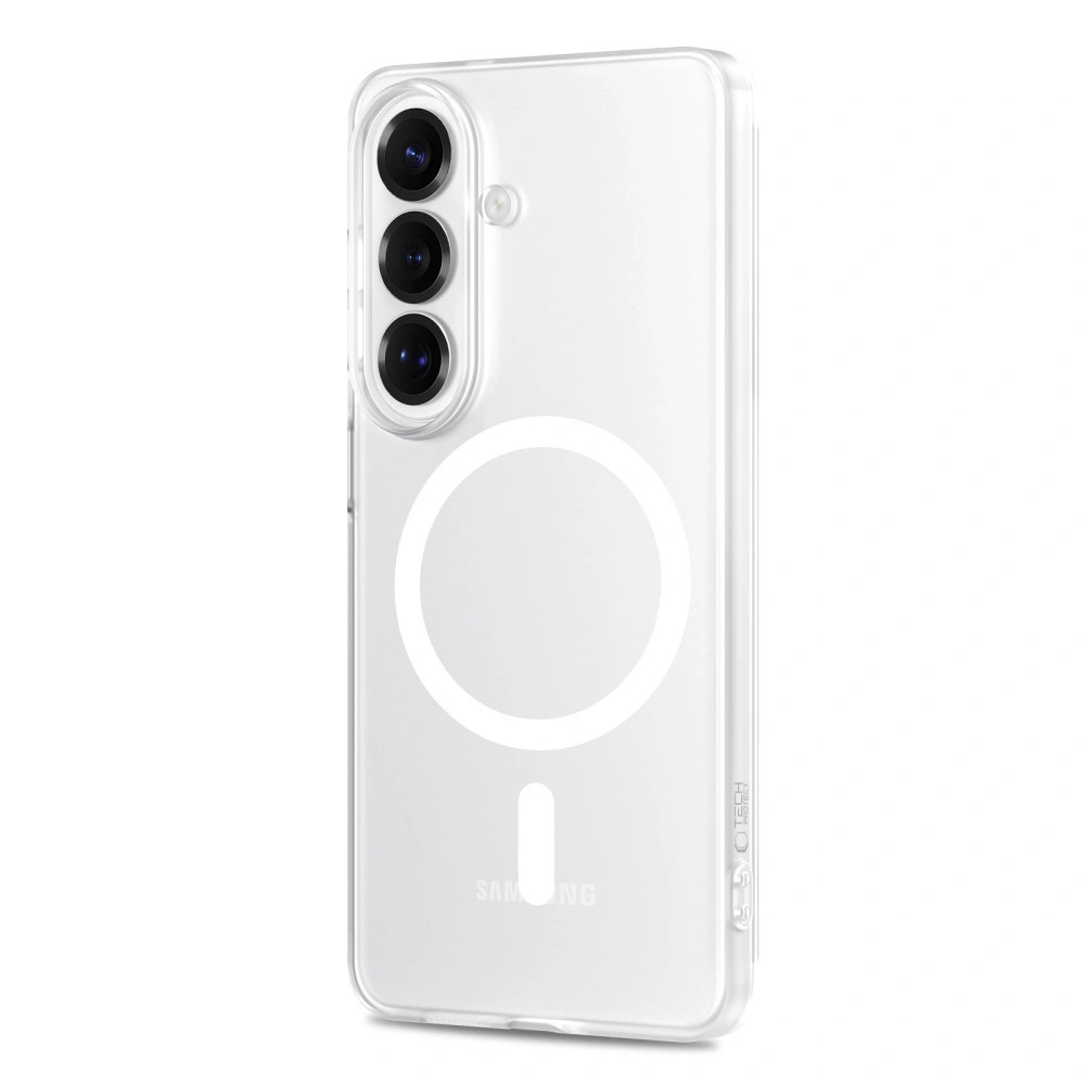 Tech-Protect MagSlim Samsung Galaxy S26 hátlap tok kitámasztóval, MagSafe, áttetsző-fehér