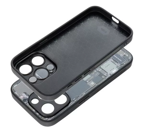 Eredeti kialakítás A hátlapot a telefon belsejét utánzó minta különbözteti meg . A tok szokatlan kialakítását a széleken és a belső oldalon elegáns matt fekete kivitel egészíti ki. Robusztus kivitelezés A tok robusztus TPU műanyagból készült, hátlapját pedig kemény és karcálló edzett üveg borítja. A modern védelmi technológiák használatának köszönhetően olyan tok jött létre, amely a legmagasabb szintű védelmet nyújtja. Specifikációk: Anyaga: TPU, edzett üveg (hátlap).