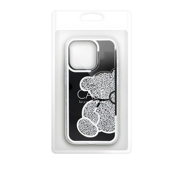 Teddy Bear iPhone 14 Pro csillogó köves tok, ezüst