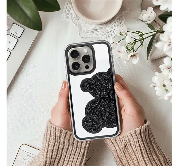 A Teddy Bear egy stílusos és funkcionális tok, amely jellegzetes, csillogó mackómintával, emelt élekkel rendelkezik. Műanyagból készült.