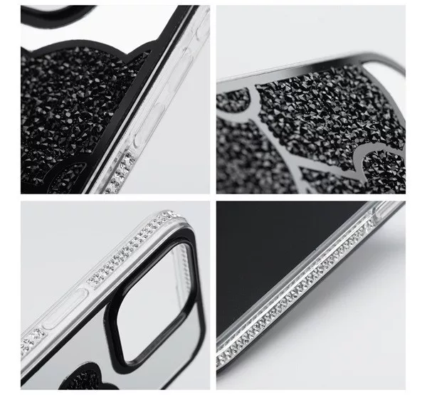 Teddy Bear iPhone 14 Pro csillogó köves tok, fekete