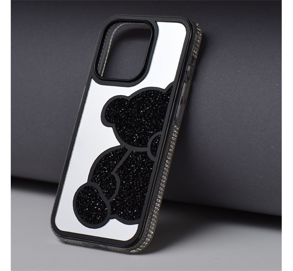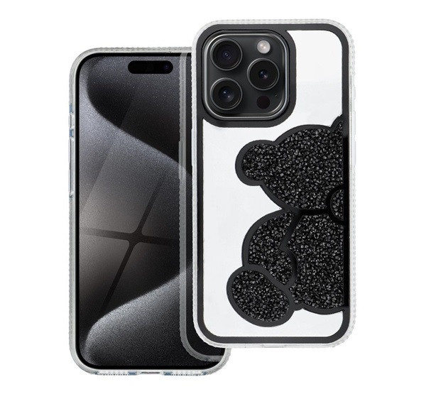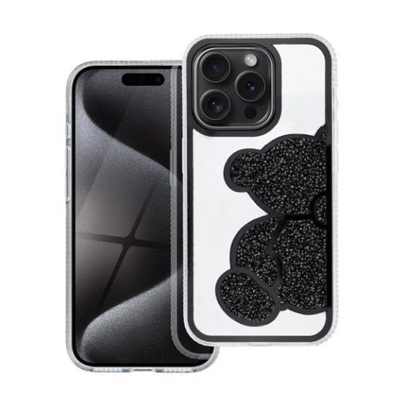 Teddy Bear iPhone 16 Plus csillogó köves tok, fekete