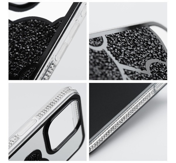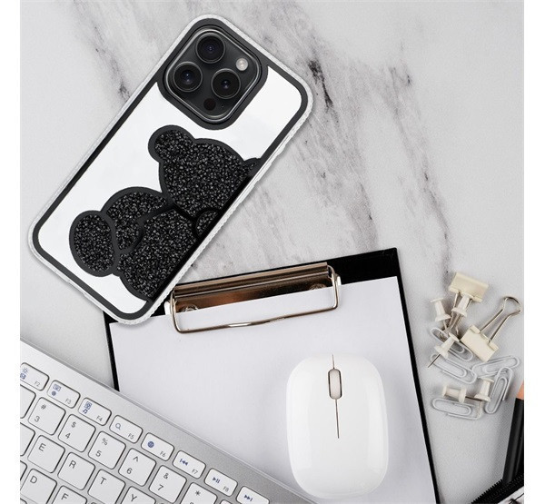 A Teddy Bear egy stílusos és funkcionális tok, amely jellegzetes, csillogó mackómintával, emelt élekkel rendelkezik. Műanyagból készült.