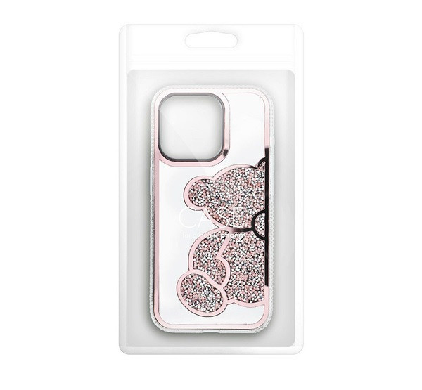 Teddy Bear iPhone 16 Plus csillogó köves tok, rózsaszín
