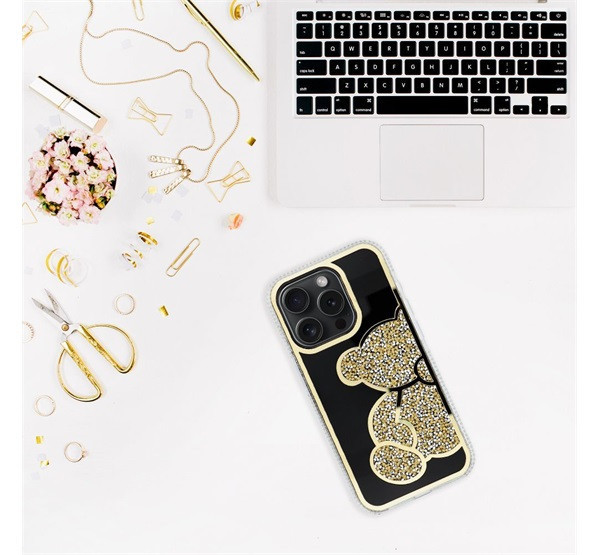 Teddy Bear iPhone 16 csillogó köves tok, arany
