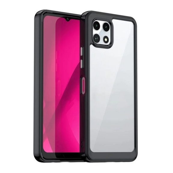 Telekom T Phone 2 5G, Műanyag hátlap védőtok + szilikon keret, közepesen ütésálló, átlátszó hátlap, fekete