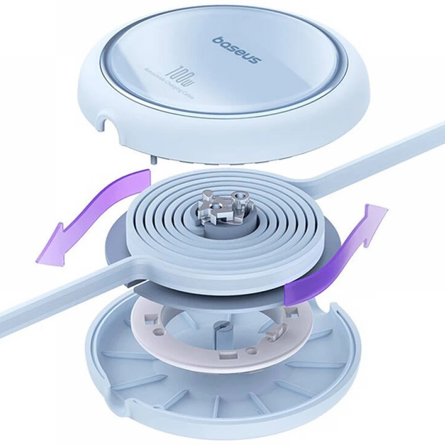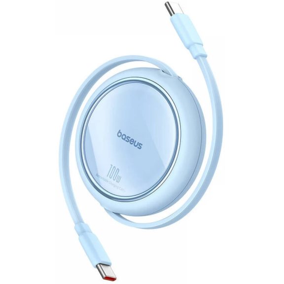 USB Type-C töltő- és adatkábel, USB Type-C, 100 cm, 100W, gyorstöltés, PD, lapos, feltekerhető, Baseus Free2Draw, világoskék
