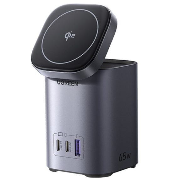 Az UGREEN X555 egy kompakt és hatékony megoldás azok számára, akik egyszerre akár 4 eszközt szeretnének gyorsan tölteni. A 65W-os teljesítményével, GaN technológiájával és beépített Qi2 15W-os mágneses töltőjével a termék azonnali energia-visszaállítást biztosít mind az okostelefonok, mind a laptopok számára. A mágneses állvány lehetővé teszi a dőlésszög beállítását és a 360°-os teljes elforgatást a további kényelem érdekében.