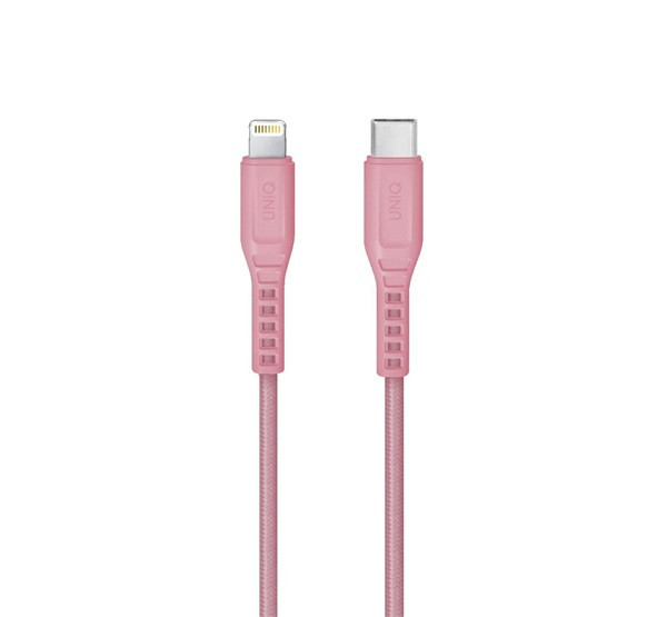 Uniq Flex USB-C / Lightning MFi töltő- és adatkábel, 1.2m, rózsaszín