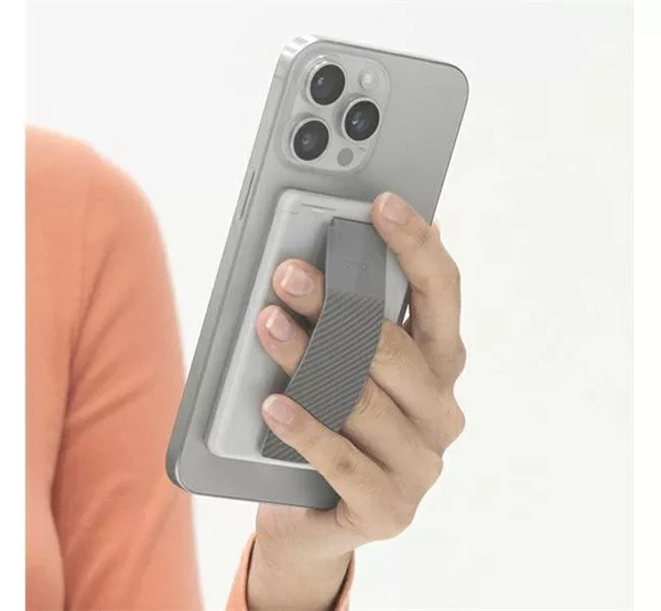 A Uniq Heldro ID egy sokoldalú, mágneses kártyatartó, amely egyben telefontartóként és kényelmes fogásként is funkcionál.