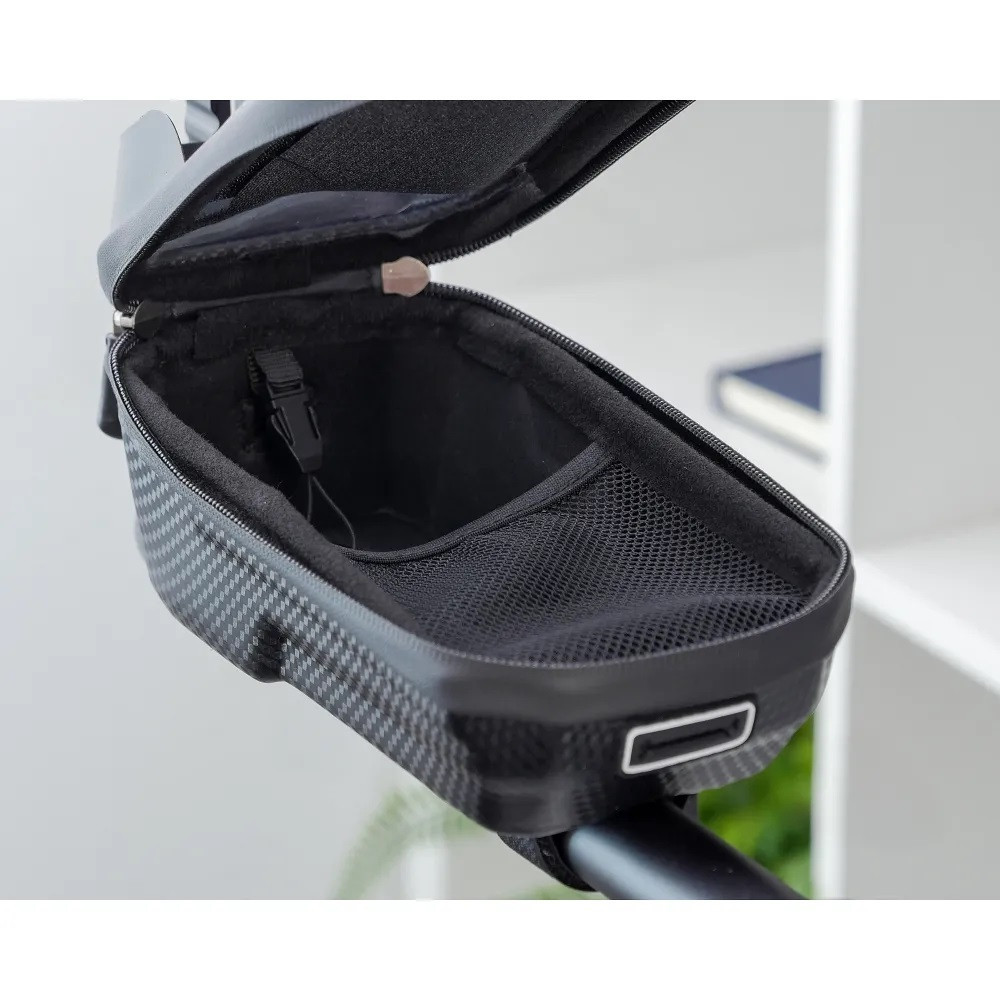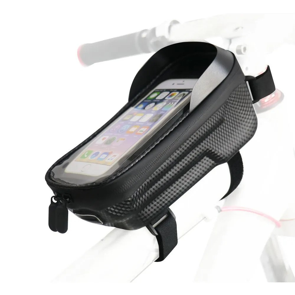 Nagy tartósságú és vízálló anyagból készült. Tárolhat benne akár kisebb biciklis eszközöket is. A telefon zseben lévő átlátszó fólia érintés-érzékeny, ami elősegíti, hogy könnyebben tudja kezelni a telefonját kerékpározás közben is és a tető formájú napellenző megakadályozza, hogy erős napfényben romoljon a képernyő olvashatósága. Kompatibilis a legtöbb 5 - 6.2" - os készülékkel.