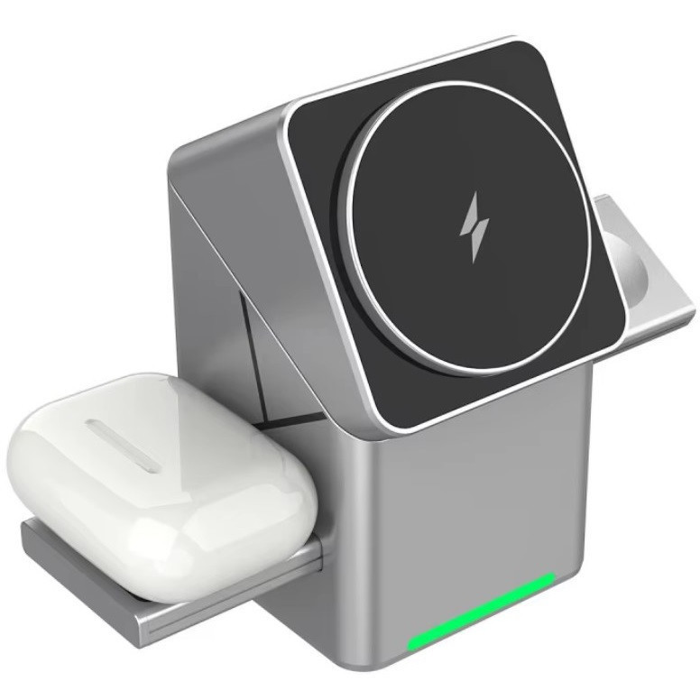 Ugyanilyen funkcionálisak a töltő egyéb elemei is - két kicsúsztatható töltőállomás az AirPods és az Apple Watch számára, és az aktuális igényeknek megfelelően önállóan behúzhatók. Ez a megoldás megőrzi a készülék karcsú profilját, így értékes helyet takarít meg az íróasztalon vagy az éjjeliszekrényen.