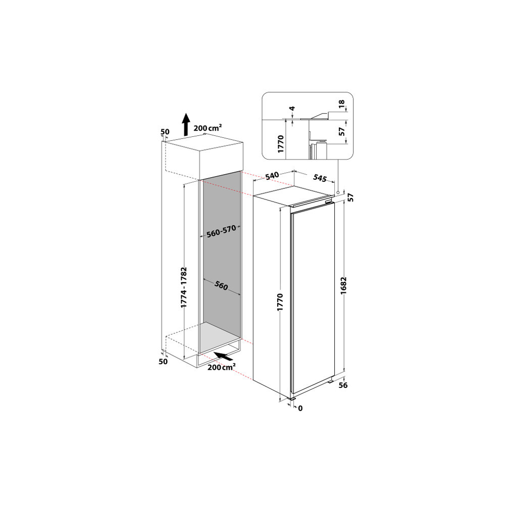 180 cmEz a Whirlpool beépíthető fagyasztó 180 cm magas.