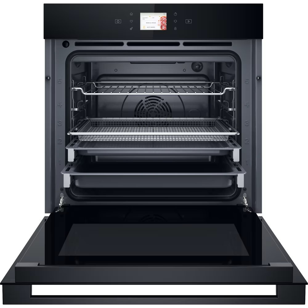Fekete üveg, finoman csukódó sütőajtó (3 rétegű), 6. Érzék funkció receptekkel, MF8, SmartClean (hidrolitikus) sütőtisztítás, "A+" energiaosztály, elektronikus hőmérséklet szabályozás, LCD TFT 3'5 kijelző (magyar nyelvű, érintőszenzoros), speciális funkciók, Airfry, HH Pizza, Steam+, 2 teleszkópos sütősín, Ready2Cook funkció, Cook4 funkció, hűtőventilátor, hőlégbefúvás, 73 liter