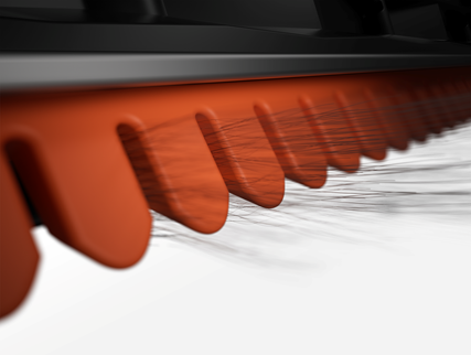 A folyamatos nyomású, lebegő fésűs kaparó éles, sűrű, „cápa-fog” kialakítású, 400%-kal hosszabb fogakkal*. Kisimítja a hajat, hogy megelőzze a gubancolódást, így a szívás gyors és pontos. A négy lépésből álló rendszer (rögzít, kifésül, irányít, felszív) akár 3000 hosszú hajszálat is képes kezelni gubancolódás nélkül*.
