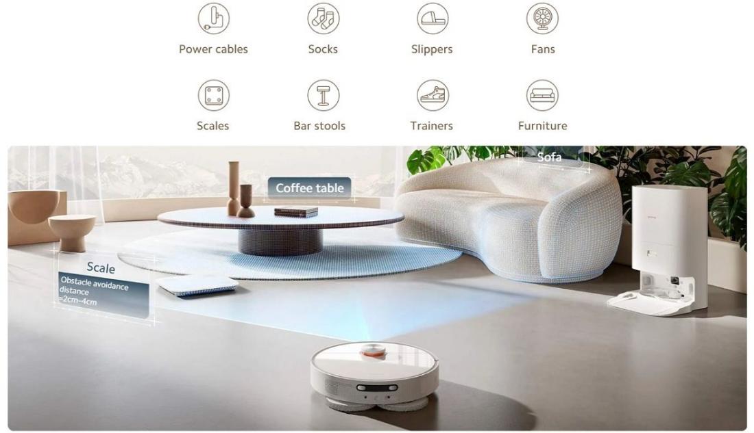 3D akadályfelismerő és -elkerülő rendszer (S-Cross AI™) - a lézeres (LDS) navigáció, kiegészülve egy kamerával és egy mesterséges intelligencián alapuló (AI) algoritmussal precízen tervezi meg a takarítást és kerüli el az útjába kerülő akadályokat, legyen szó széthagyott papucsról, kábelekről, játékokról, vagy zokniról