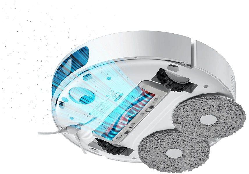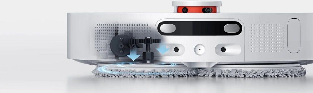 Automatikus felmosó-egység felemelés szőnyeg esetén - A beépített szőnyegérzékelőnek köszönhetően szőnyeghez érve felemelkedik a nedves mop korong, hogy ne vizezze be a szőnyeg szálait.