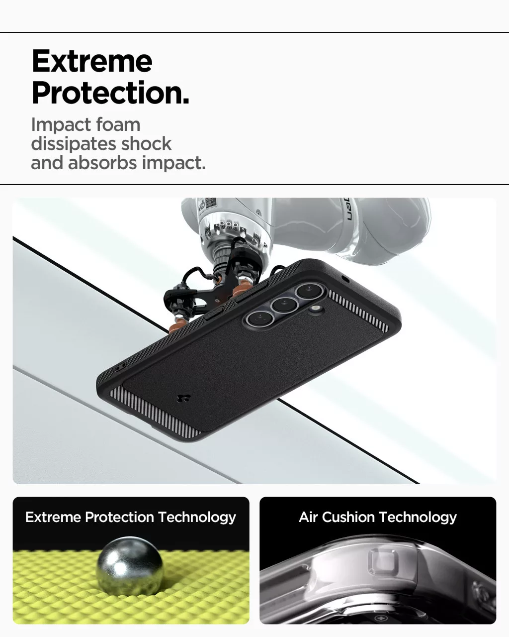 Fedezze fel a Spigen Rugged Armor tokot, amely tökéletes védelmet nyújt a mindennapi használat során. Kialakítása elegáns, mégis strapabíró, így ideális választás azoknak, akik aktív életmódot élnek. A rugalmas TPU anyag és a belső pókháló mintázat fokozott ütésállóságot és megfelelő légáramlást biztosít, míg a szénszálhoz hasonló textúra és a fényes részletek modern megjelenést kölcsönöznek. Kompatibilis a vezeték nélküli töltéssel, ez a tok nemcsak védi, hanem stílusos kiegészítője is okostelefonjának.