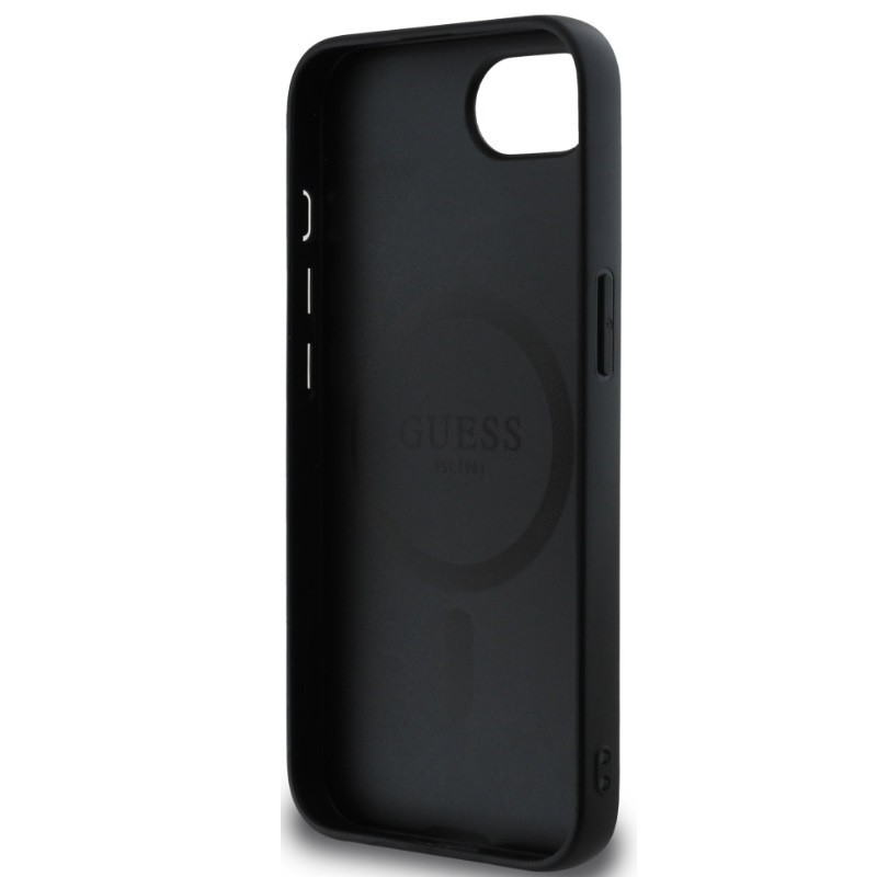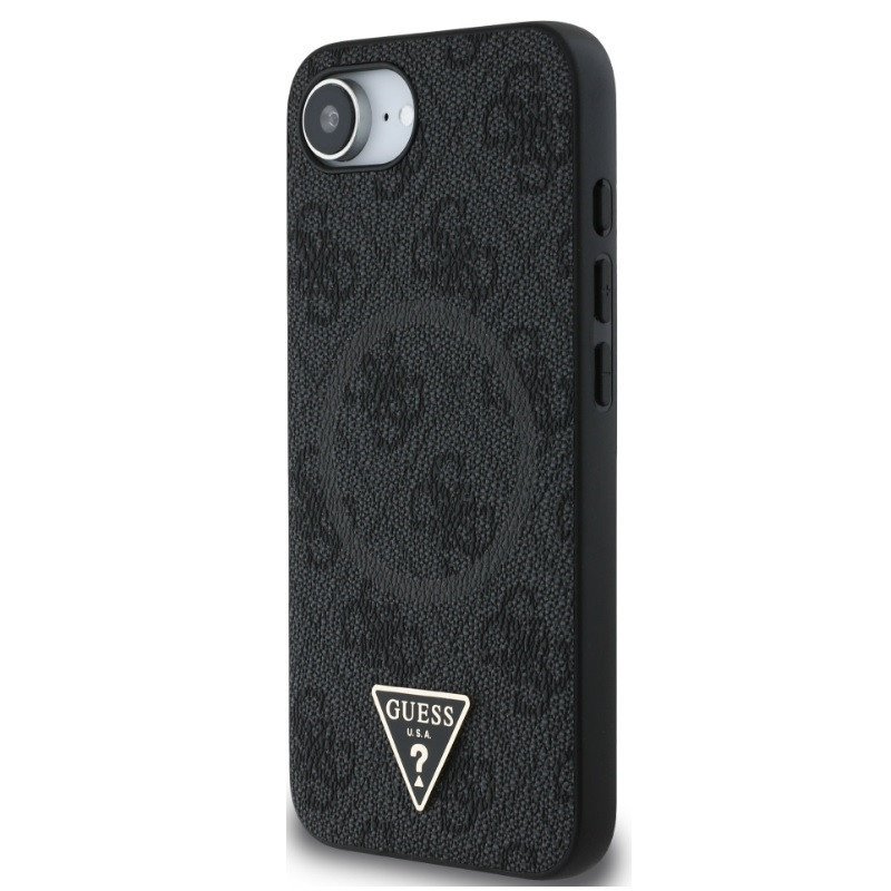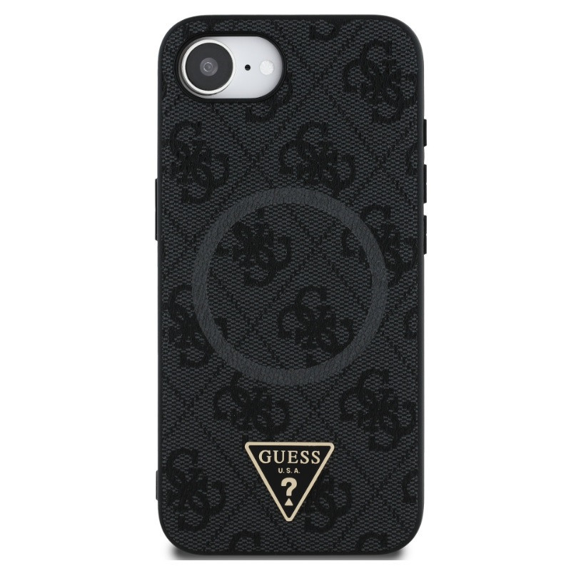 Guess PU 4G Strass Triangle Metal Logo Apple iPhone 17e / iPhone 16e MagSafe hátlap tok, fekete