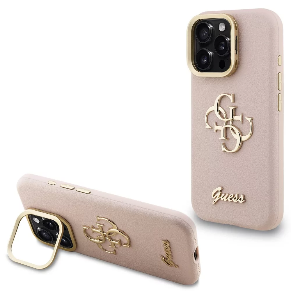 Guess PU Grained 4G Logo Stand Camera Frame iPhone 16 Pro hátlap tok kitámasztóval, rózsaszín Guess PU Grained 4G Logo Stand Camera Frame iPhone 16 Pro hátlap tok kitámasztóval, rózsaszín