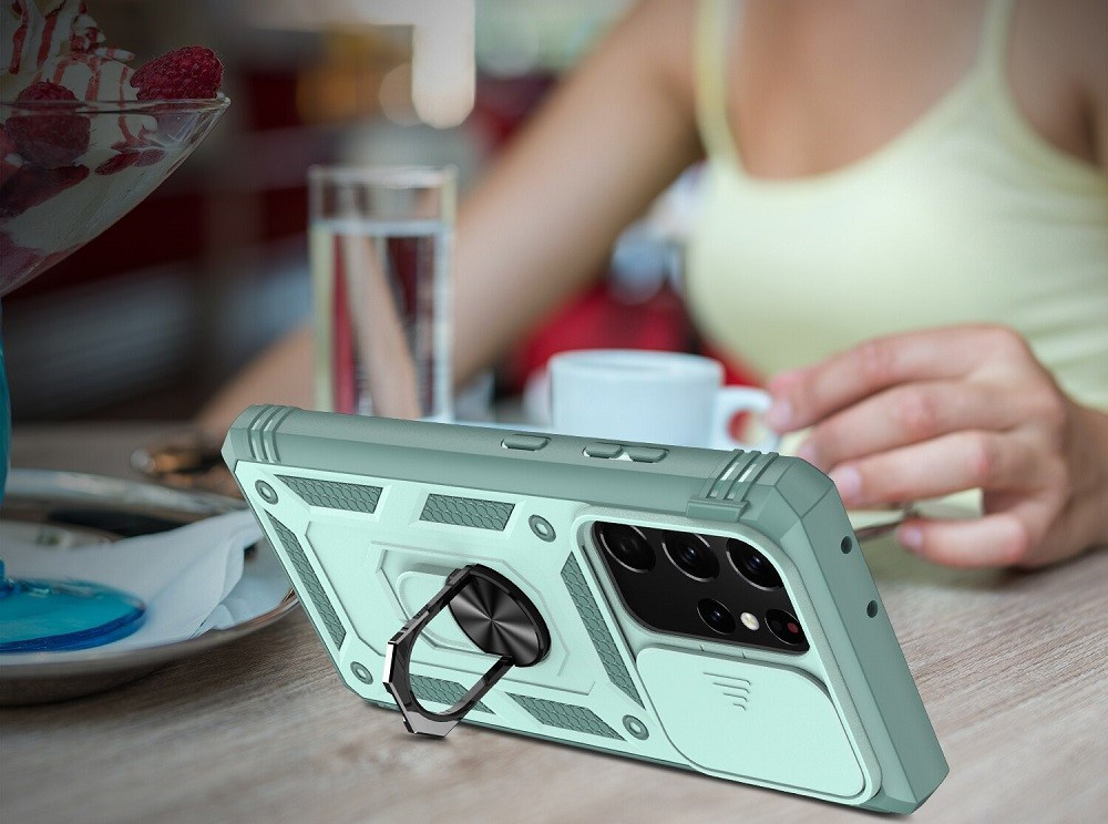 -Telefontartó gyűrűvel látták el a kényelmesebb és biztonságosabb fogás érdekében, ami kitámasztóként is funkcionál.