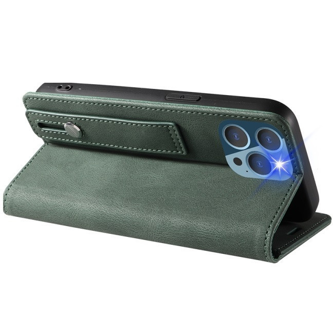 Xiaomi Redmi 10A, Oldalra nyíló tok, stand, kártyatartóval, kézpánttal, Wooze Business Plus, sötétzöld