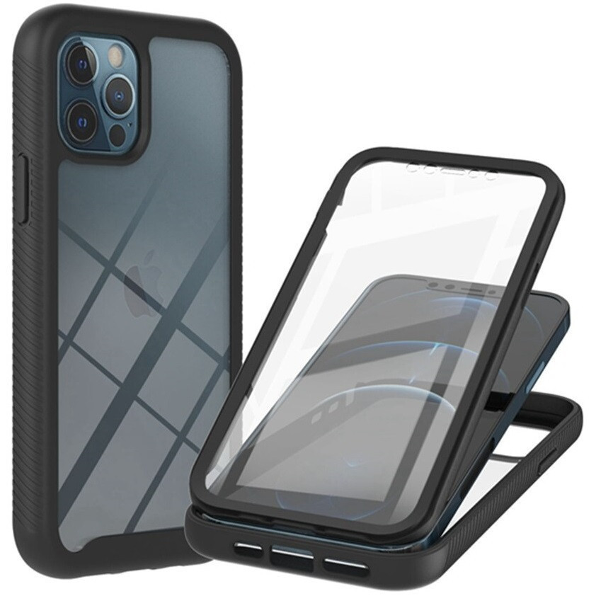 Apple iPhone 15 Pro Max, Szilikon hátlap és műanyag előlapi tok, elő- és hátlapi üveggel, közepsen ütésálló, Wooze Power Case, fekete