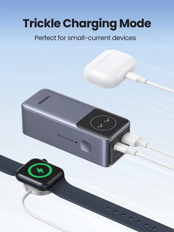 100 W-os nagysebességű töltés: Vészhelyzet esetén gyorsan feltölti az olyan eszközöket, mint az iPad Pro M4 40%-ra 30 perc alatt, az iPhone 15 60%-ra, a MacBook Pro 16'' pedig 43%-ra.
