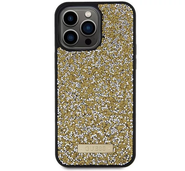 Guess Rhinestone Metal Logo Apple iPhone 15 Pro Max hátlap tok, sárga