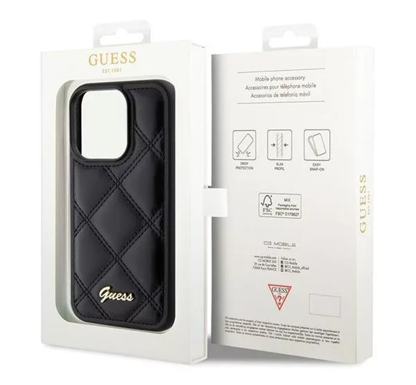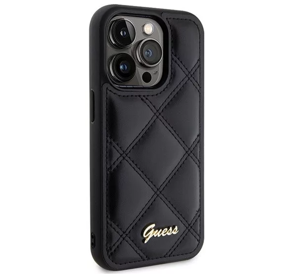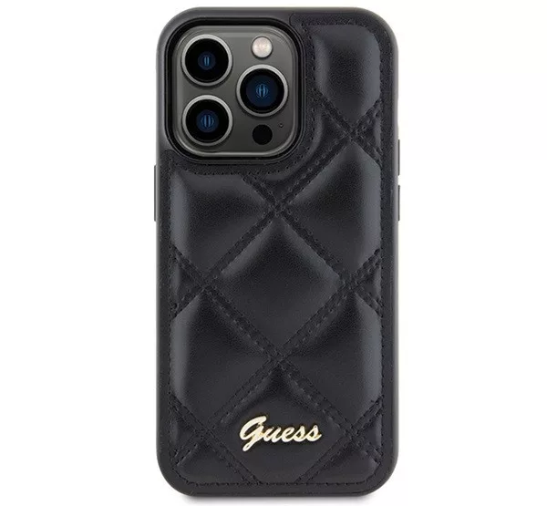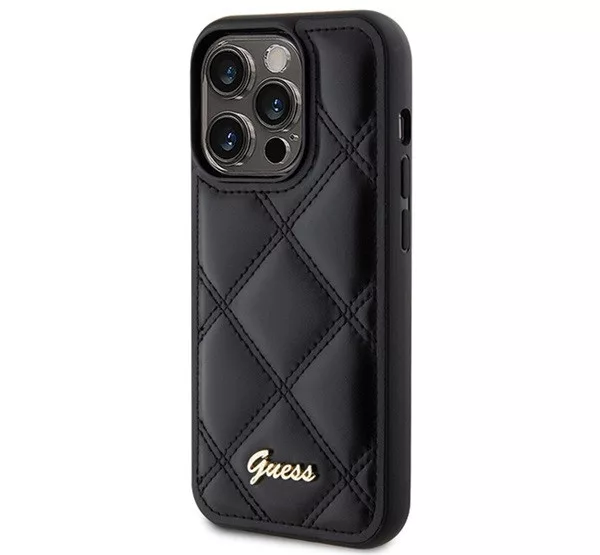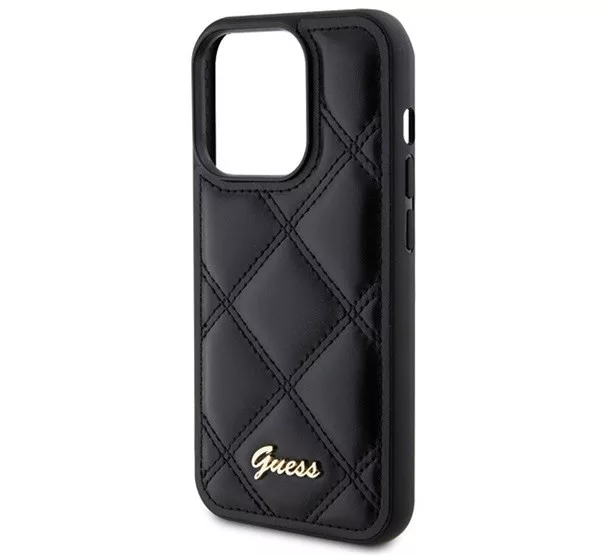 Guess Quilted Metal Logo Apple iPhone 15 Pro Max hátlap tok, fekete