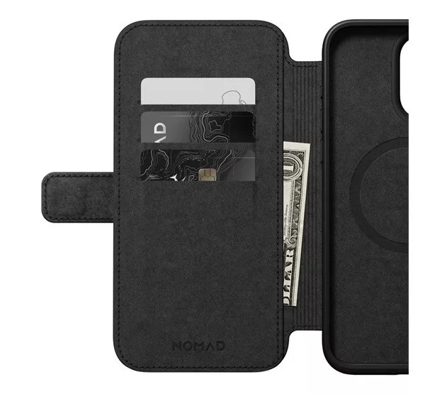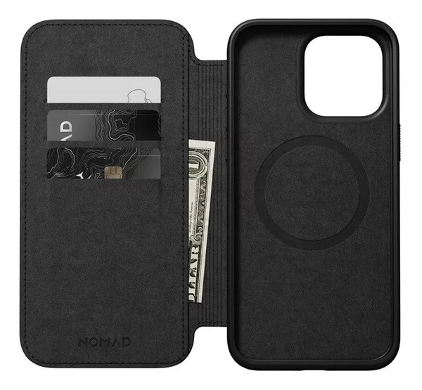 Nomad Modern Leather Folio iPhone 15 Pro Max flip tok, fekete