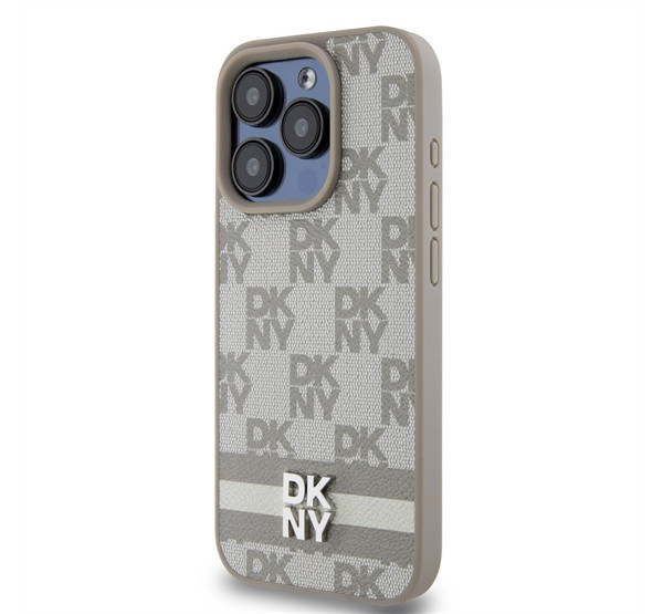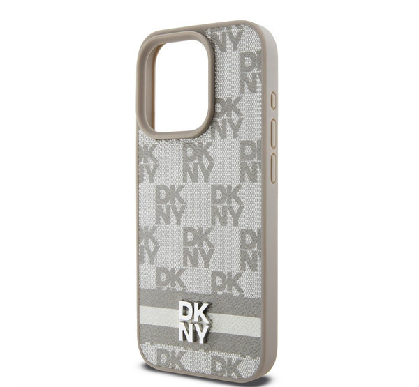 DKNY PU Leather Checkered Pattern and Stripe iPhone 13 Pro hátlap tok, bézs