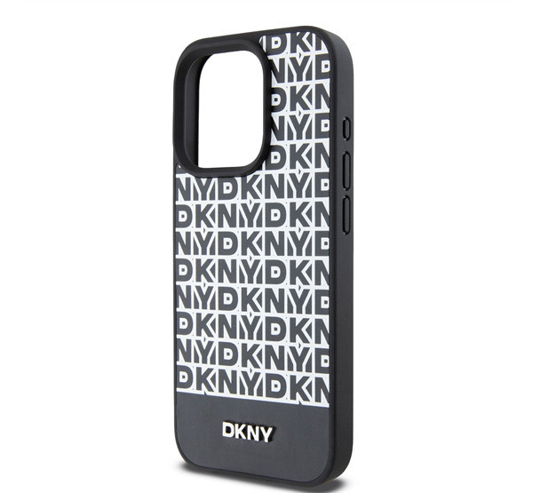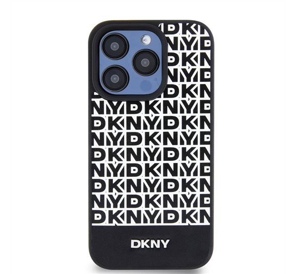 DKNY PU Leather Repeat Pattern Bottom Stripe iPhone 13 Pro hátlap tok, fekete