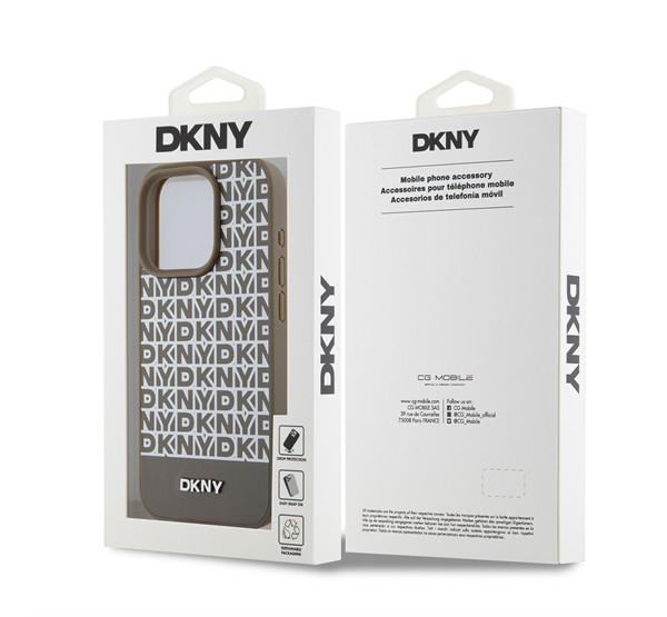DKNY PU Leather Repeat Pattern Bottom Stripe iPhone 13 Pro hátlap tok, barna