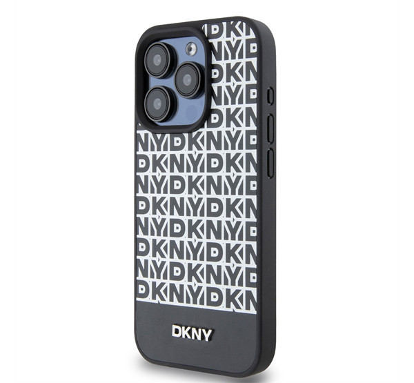 DKNY PU Leather Repeat Pattern Bottom Stripe iPhone 14 Pro Max hátlap tok, fekete