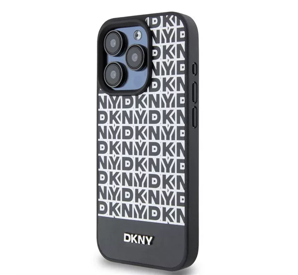 DKNY PU Leather Repeat Pattern Bottom Stripe iPhone 15 Pro Max hátlap tok, fekete