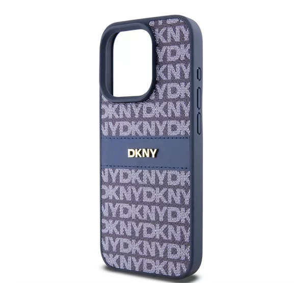 DKNY PU Leather Repeat Pattern Tonal Stripe iPhone 15 Pro Max hátlap tok, kék