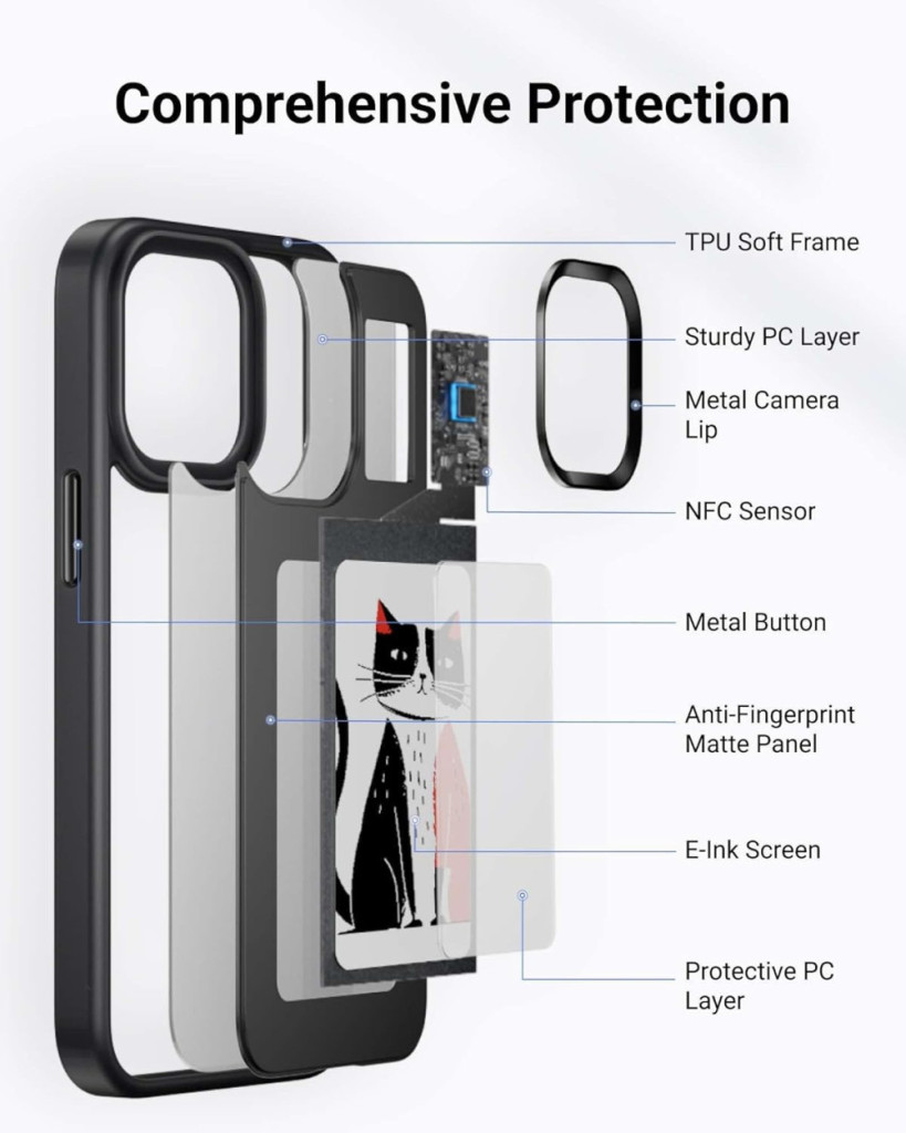 • A legmodernebb E-Ink kijelző technológia okos kivetítést biztosít a tok hátlapjára, energiahatékony és egyedi élményt nyújtva.