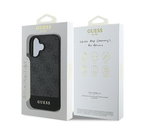 Guess 4G Bottom Stripe Apple iPhone 16 Plus hátlap tok, szürke GUHCP16MG4GLGR