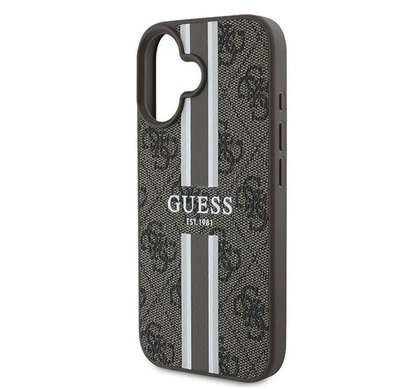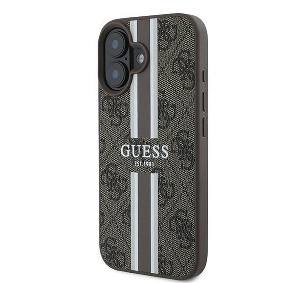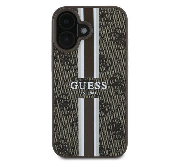 Guess 4G Printed Stripes MagSafe Apple iPhone 16 Plus hátlap tok, barna GUHMP16MP4RPSW