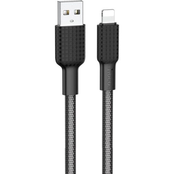 USB töltő- és adatkábel, Lightning, 100 cm, 2400 mA, törésgátlóval, gyorstöltés, cipőfűző minta, Hoco X69 Jaeger, fekete/fehér