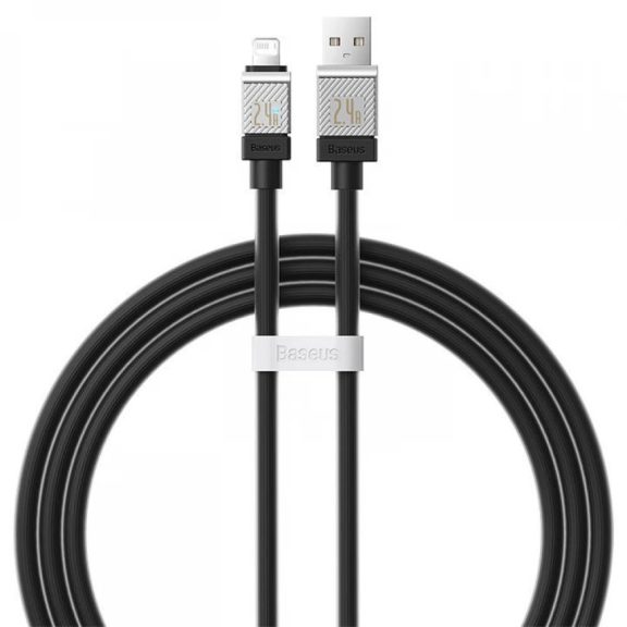 USB töltő- és adatkábel, Lightning, 100 cm, 2400 mA, törésgátlóval, gyorstöltés, Baseus Coolplay, CAKW000401, fekete