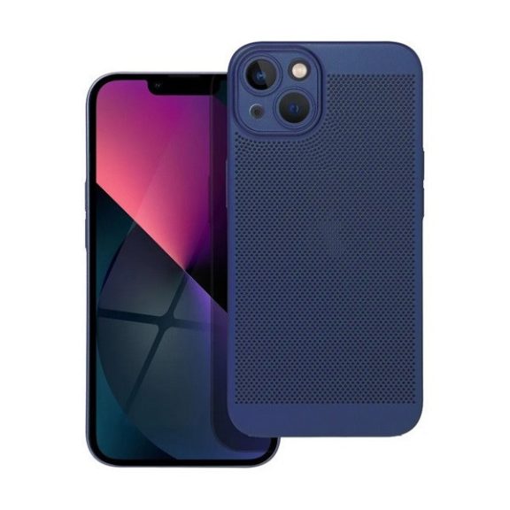 Apple iPhone 14 Plus, Műanyag hátlap védőtok, légáteresztő, lyukacsos minta, Breezy, sötétkék
