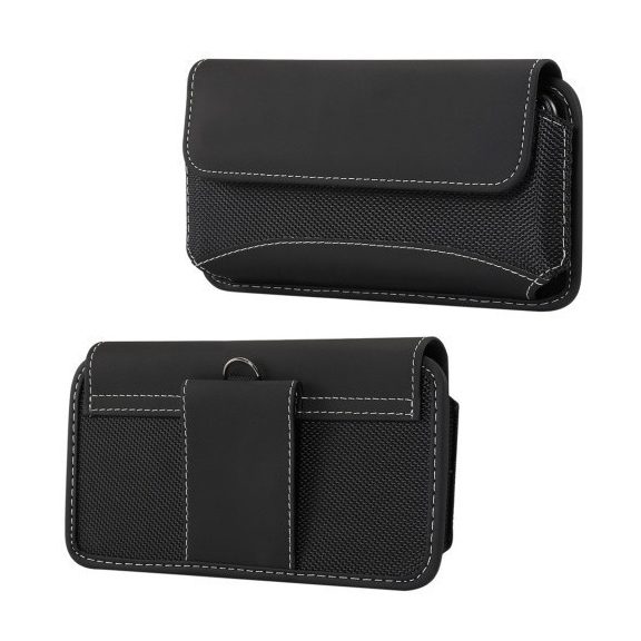 Univerzális tok, fekvő, textil, bőr bevonat, övre fűzhető, tépőzáras, 5.5", fekete