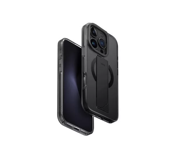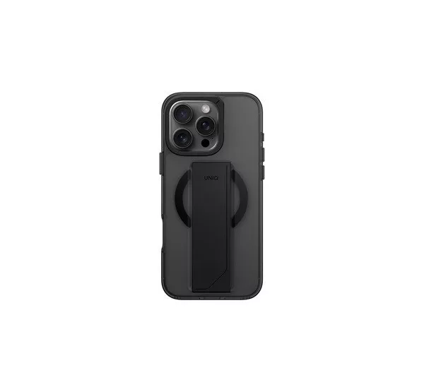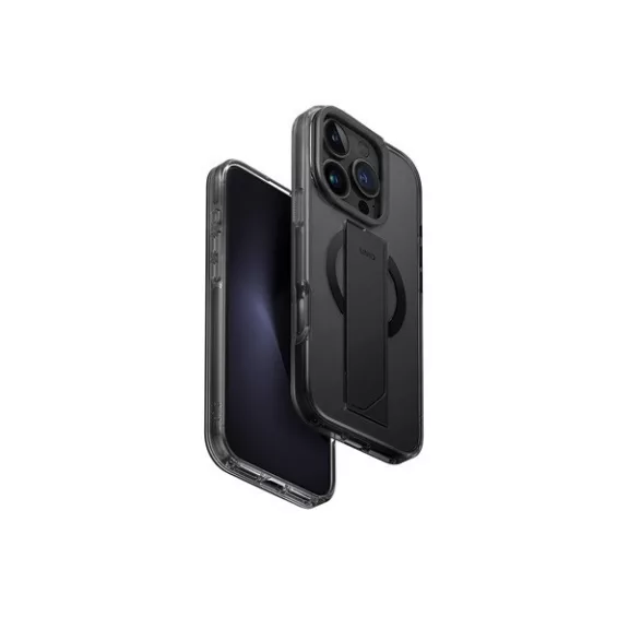 Uniq Heldro Max iPhone 16 Pro MagSafe tok kitámasztóval, fekete/szürke