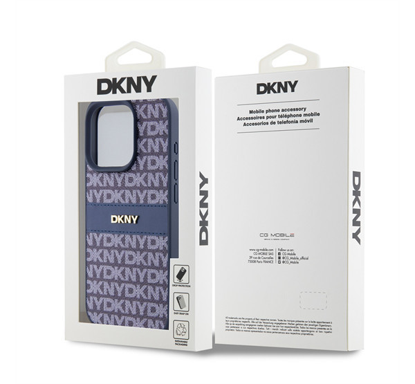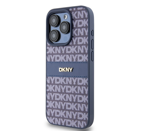 DKNY PU Leather Repeat Pattern Tonal Stripe iPhone 14 Pro Max hátlap tok, kék