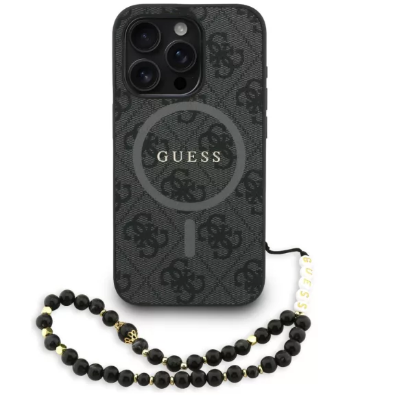 Guess PU Leather 4G Colored Ring Strap Apple iPhone 15 Pro MagSafe tok fekete színű karpánttal, fekete
