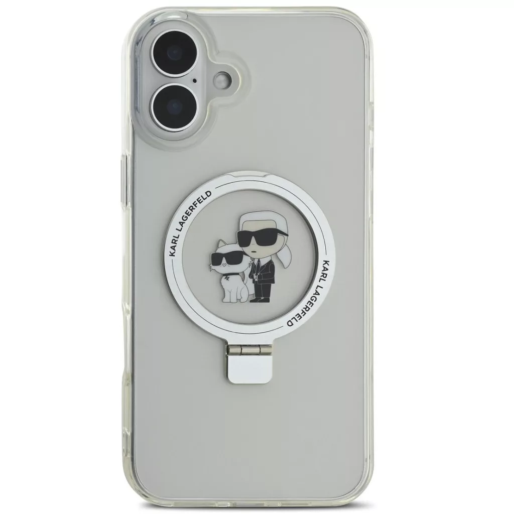 Karl Lagerfeld Ringstand Karl and Choupette iPhone 16 MagSafe tok kitámasztóval, fehér