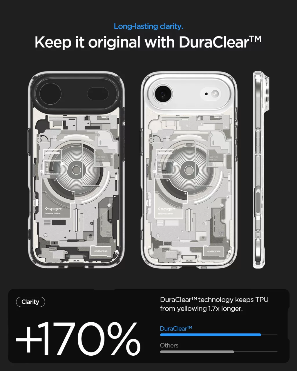 Az Ultra Hybrid Mag továbbra is biztosítja a kiváló ütésálló védelmet, köszönhetően a merev polikarbonát hátlapnak és rugalmas TPU keretnek. Az átlátszó hátlap tökéletesen mutatja be a telefon eredeti designját, miközben a kiemelt keretek extra védelmet nyújtanak a kamera és a képernyő számára.